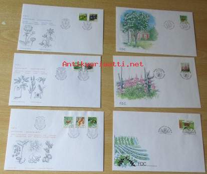 Maakuntakukat, Postileima Helsinki 2.3.1992, Maakuntakukat, Postileima Helsinki 5.2.1992, Maakuntakukat, Postileima Helsinki 19.1.1990, FDC Kuori, Postileima Helsinki 5.2.1991, FDC Kuori, Postileima Helsinki 9.10.1992, FDC kuori, Moderni Maatalous, Postileima Joensuu 4.6.1992,kirjeet ehjät siistit, Postitus Kirjepakettina