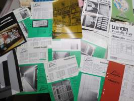 Lundia - 12 kpl erilaisia Lundia-hyllyjärjestelmän esitteitä 1970-luvulta