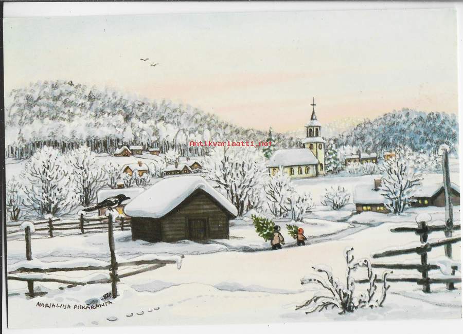 Kuusenhakumatka sign Marja-Liisa Pitkäranta postikortti joulukortti taiteilijapostikortti kulkematon
