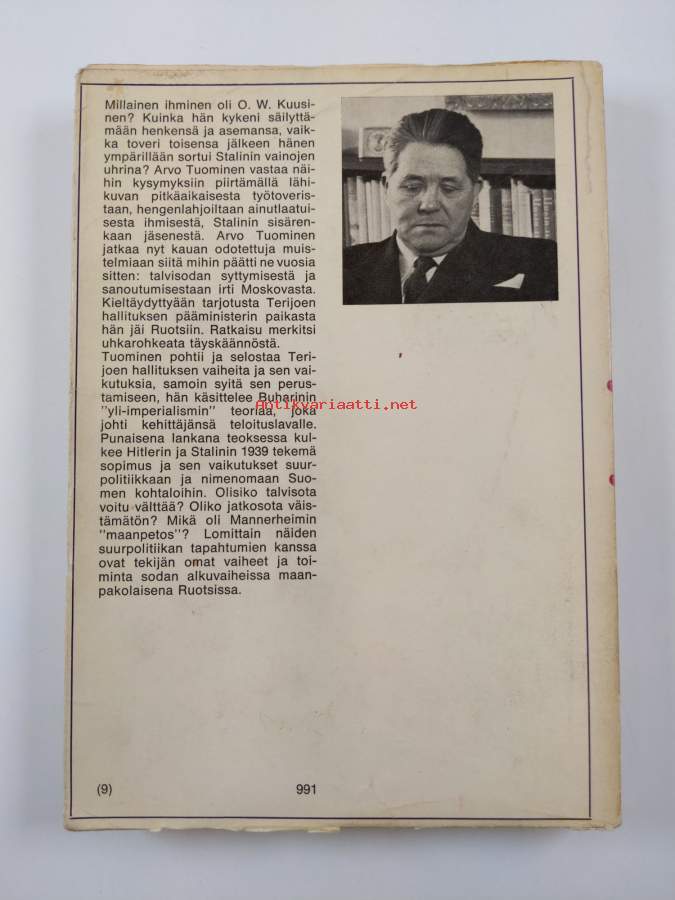 Tuominen, Arvo. Nimeke:Myrskyn aikaa. Otto Wille Kuusisen elämänkerta