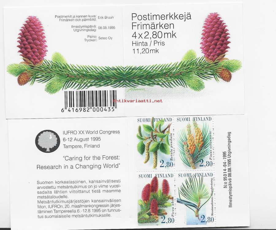 Suomi - Postimerkki/vihko 1995 - Metsä V28 ** postituore (8.8.1995). LAPE 1300-1303. 4 x 2,80mk.
