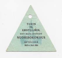 Turun 25. kristillinen Nuorisokokous Betelissä 1934 i - rintamerkki pahvia