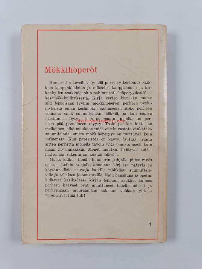 Mökkihöperöt, 1965. 1.p. Humoristisen keveä tarina kaikkien kaupunkilaisten ja kauppaloiden asukkaiden pahimmsta "höperyydestä" - kesämökkivillityksestä.