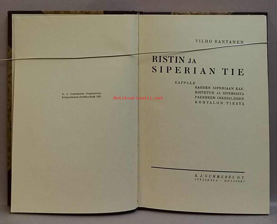 Kahden Siperiaan karkotetun ja Siperiasta paenneen inkeriläisen kohtalon tiestä yli viidentuhannen kilometrin matkalta kohti Suomea ja Rajajokea. Dimensiot 19 ¤ 13 cm.