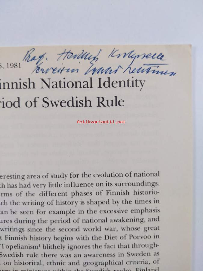Notions of a Finnish National Identity during the Period of Swedish rule (signeerattu, tekijän omiste)