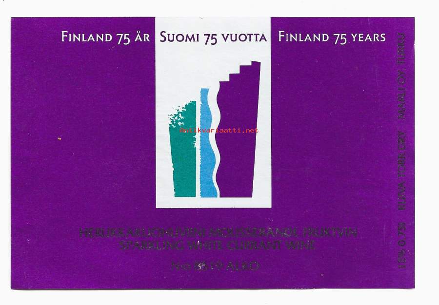 Suomi Finland 75 år Alko nr 8519 - viinietiketti viinaetiketti