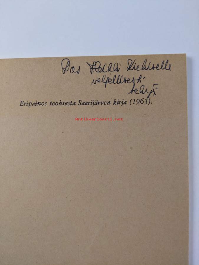 Hyvä. Tarkempi kuntoluokka: K3+ ; Etukannessa tekijän kirjoittama omiste,hieman värjäytymää kansien reunoilla