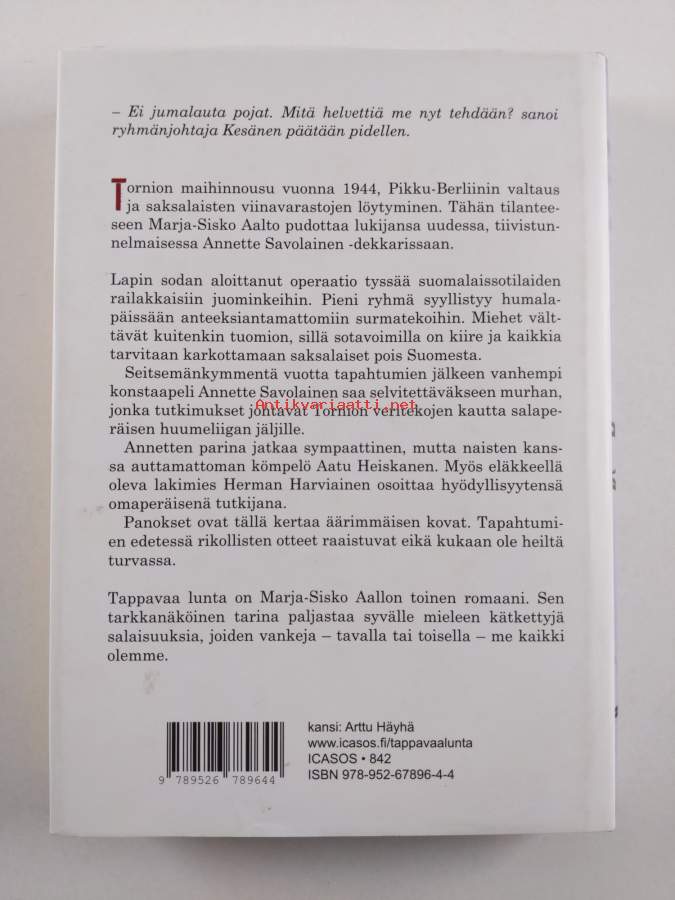 Hyvä. Tarkempi kuntoluokka: K3+ ; Pienoista kulumaa, selkämyksessä aavistus vinoutta. Kansipaperin kunto: pientä kulumaa