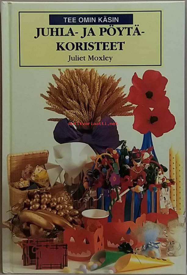 Koristele askartelemalla juhlapöytä ympäristöineen aiheen ja vuodenajan mukaan: koristeita paperista, kankaasta, nauhoista, oksista, kukista, hedelmistä, ja monista muista tarvikkeista. Kuvitettu. Dimensiot 24 ¤ 16 cm