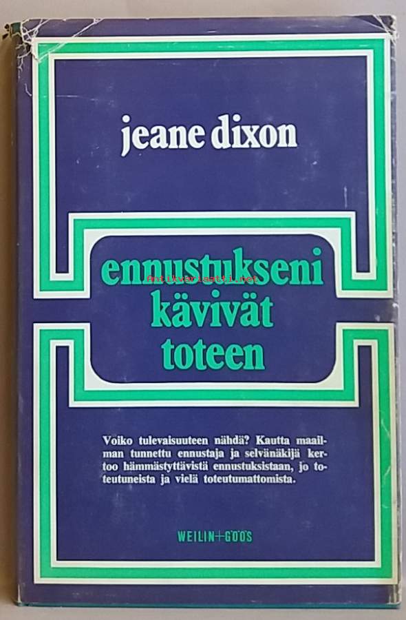 Kautta maailman tunnettu ennustaja ja selvännäkijä kertoo hämmästyttävistä ennustuksistaan niin toteutuneista ja vielä toteutumattomista. Dimensiot 21 ¤ 14 cm.