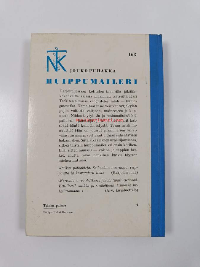 Hyvä. Tarkempi kuntoluokka: K3- ; Hieman tahraisuutta, hieman kulumaa kansissa, selkämyksessä hieman vinoutta