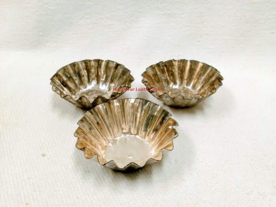 Kauniisti patinoitunut, metallia, halkaisija yläosa 4,5cm, reunan korkeus 1,8cm
