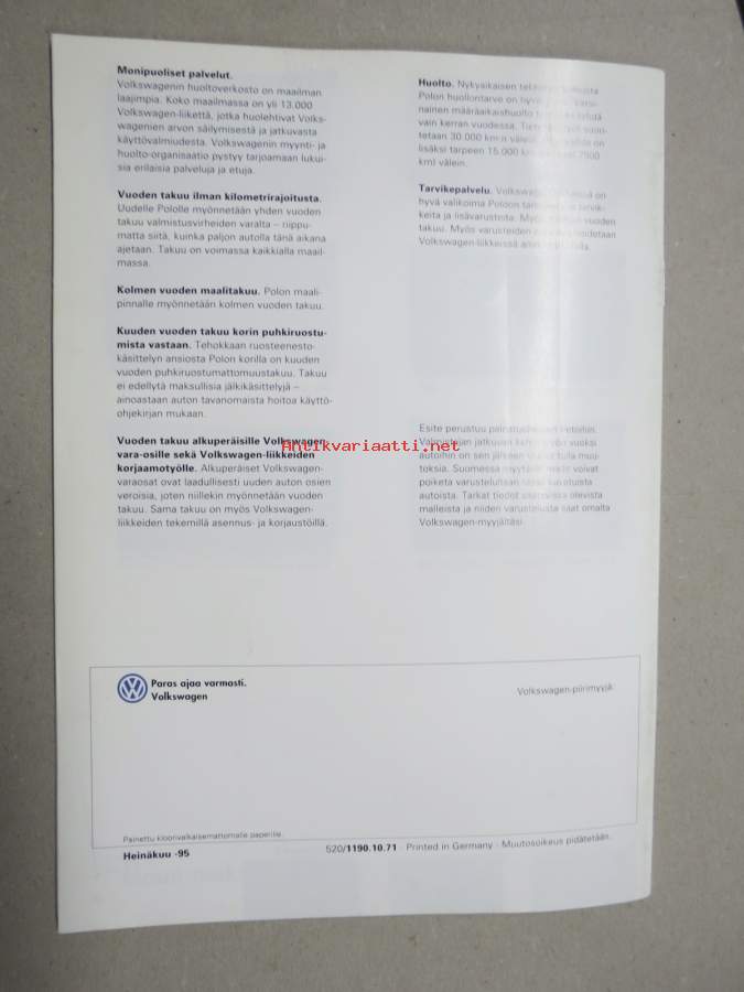 Volkswagen Polo Coupé åm. 1987 intruktionsbok