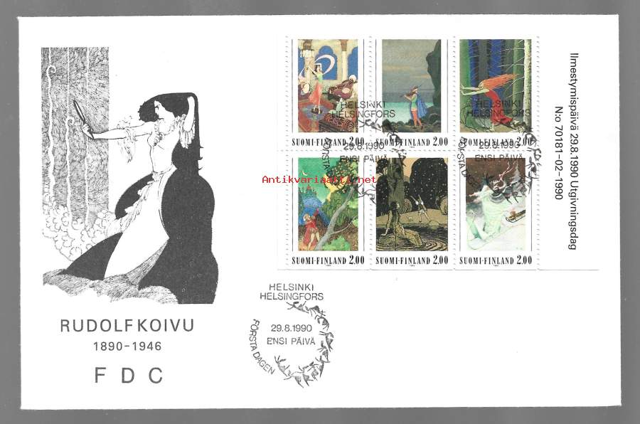 FDC Rudolf Koivu 1890-1946 ensipäiväkuori 29.8.1990
