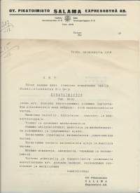 Pikatoimisto Oy Salama Turku firmakuori kulkematon 1918