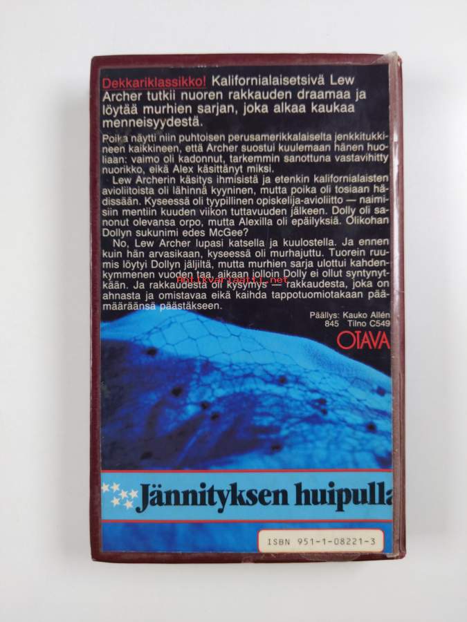 Tyydyttävä. Kirjaston poistokirja, kontaktimuovipäällystys, selkämyksessä hieman vinoutta, sidos hieman näkyvissä yhdellä aukeamalla. kontaktimuovipäällyste hieman repeillyt selkämyksestä ja takakannesta