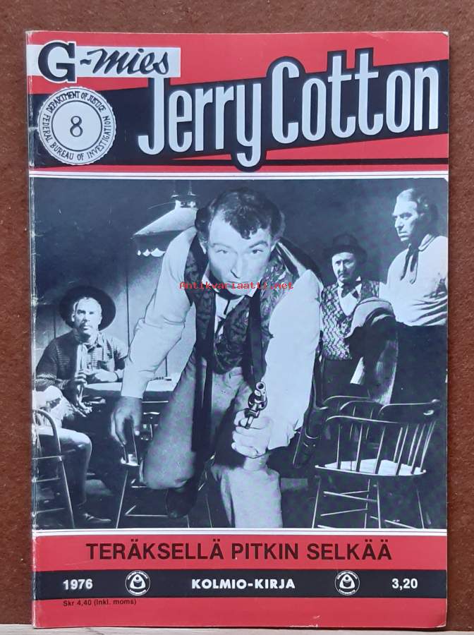 Jerry Cotton on kuvitteellinen Yhdysvaltain liittovaltion poliisin (FBI) asiamies ja saksaa puhuvien maitten suosituin rikoslukemisto. Sarjaa on käännetty parillekymmenelle kielelle ja julkaistu yhteensä noin 930 miljoonaa kappaletta. Myös Suomessa Jerry Cotton menestyi erinomaisesti ja 1960-luvun lopulla lehden kirjoittajiksi ilmaantuivat myös ensimmäiset kotimaiset kirjoittajat. Dimensiot 22 ¤ 15 cm.