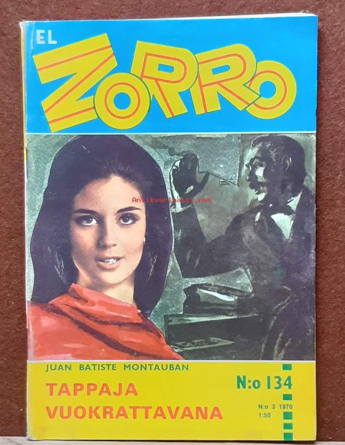 El Zorro - Tappaja vuokrattavana. N:o 134 N:o 3 1970. (Kioskikirjallisuus, lukulehdet, seikkailulukemisto)