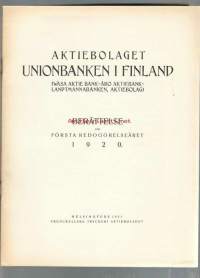 Ab Unionbank i Finland = Wasa Aktie Bank, Åbo Aktiebanj och Landtmannabanken Ab 1920 - vuosikertomus