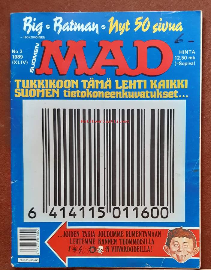 Suomen Mad 3/1989. Tukkikoon tämä lehti kaikki Suomen tietokonekuvatukset. (Sarjakuvalehti)
