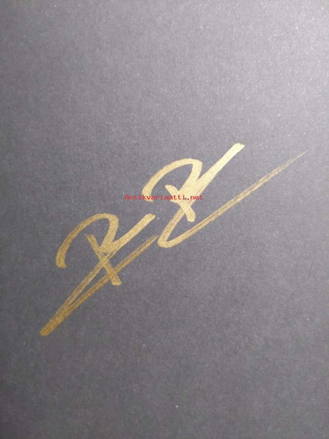 Hyvä. Tarkempi kuntoluokka: K3+ ; Hieman kulumaa kulmissa. Pete Poskiparran signeeraama