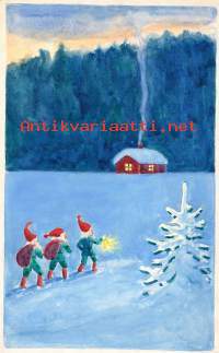 Robert Hancock, joulukortin originaali, peitevärimaalaus, sing a tergo koko 21x14 cm kehystämätön