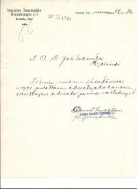 Koiviston Saarenpään Osuuskauppa rl Koivisto 1920 - firmalomake