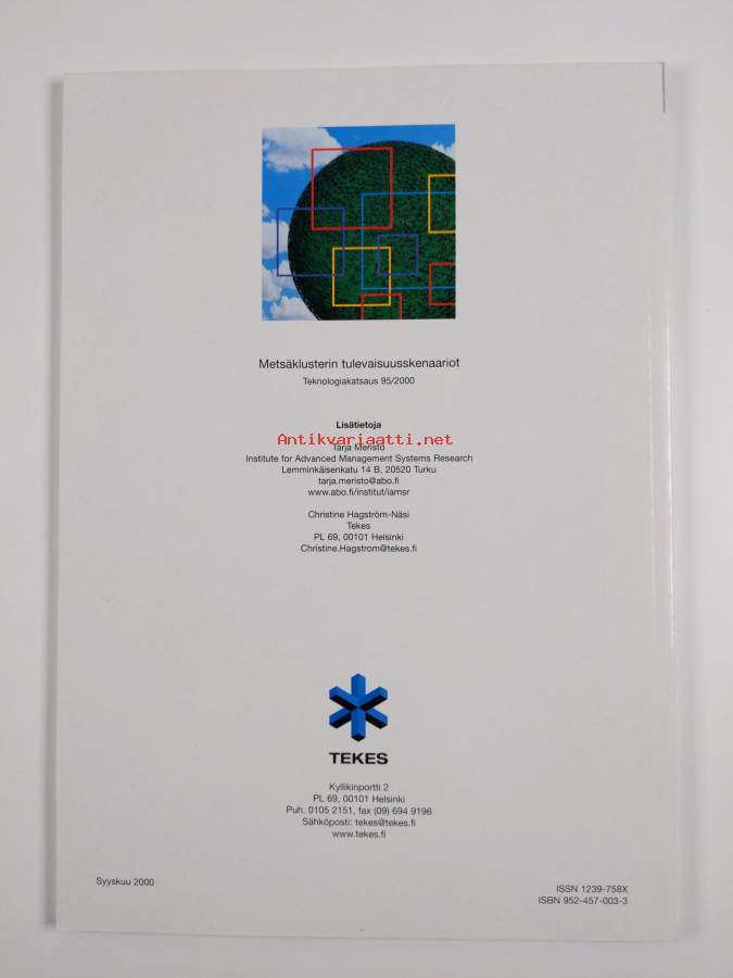 Muu(t) tekijä(t): Jyrki Kettunen, Christine Hagström-NäsiSarja: Teknologiakatsaus 95Asiasanat: metsäala, skenaariot, tulevaisuudentutkimus, metsätalous, tulevaisuus, metsäteollisuus, klusterit