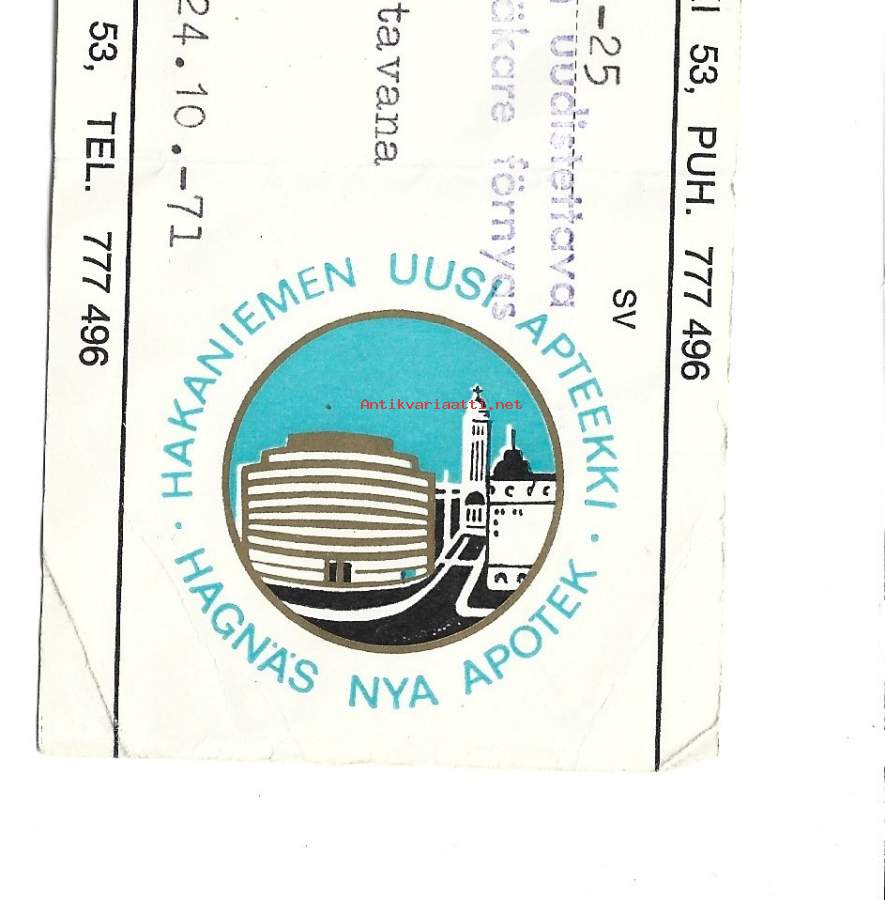 Hakaniemen Uusi Apteekki , resepti signatuuri 1971