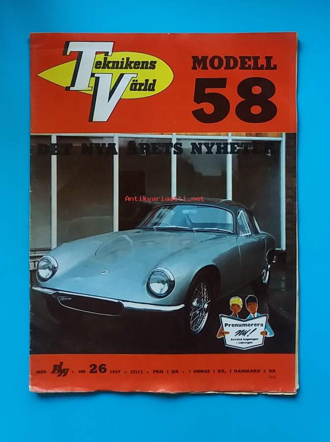 Teknikens Värld 26/1957 - Bilnyheter, test av bilar och mycket mera (Aikakauslehdet, tekniikka, 50-luku, nostalgia, tidning, tidskrift.)