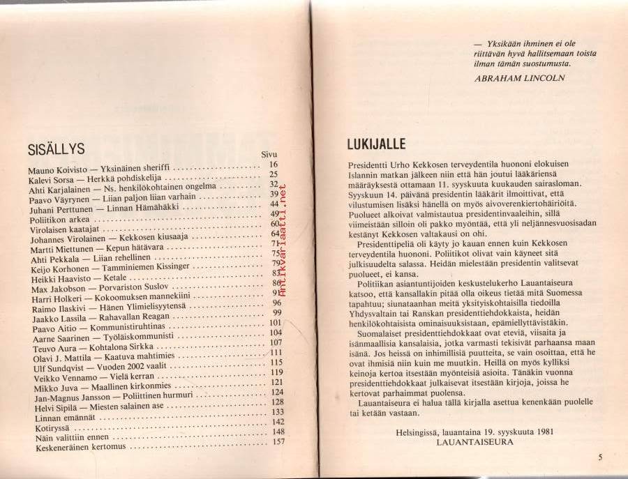 Tamminiemen pesänjakajat -Kekkonen lähtee - kuka tulee?