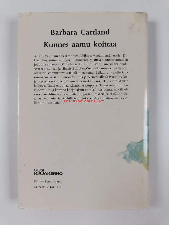 Hyvä. Tarkempi kuntoluokka: K3+ ; Pienoista kolhua reunoilla ja kulmissa, selkämyksessä hieman vinoutta. Kansipaperin kunto: jonkin verran kulumaa/pienoisia repeämiä