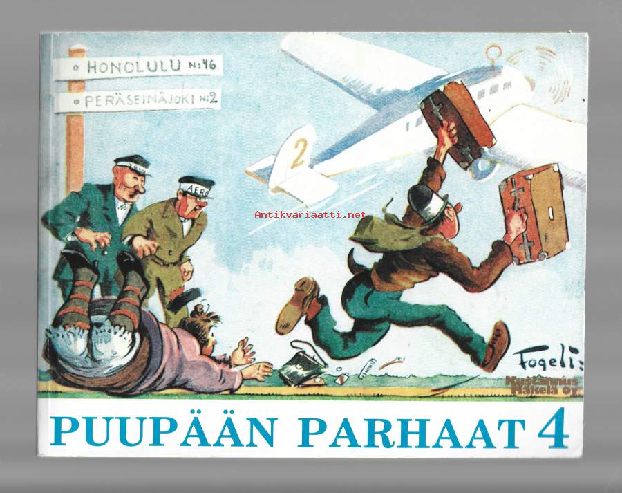 Tekijä:Fogeli. Nimeke:Puupään parhaat : sarjakuvia. 4 / piirsi Fogeli.Kieli:suomiPainos:[Uusi p.].Julkaistu:Karkkila : Kustannus-Mäkelä, 1994Painettu/Valmistettu: (Rauma : West-Point)Ulkoasu:80 s. : kuv. ; 18 x 23 cm.Huomautus:Sarjat on kuvattu 1940- ja 1950-luvuilla ilm. Pekka Puupää -kirjoista. - Edellinen p. 1984ISBN:951-873-496-8 (nid.)UDK-luokitus:741.5