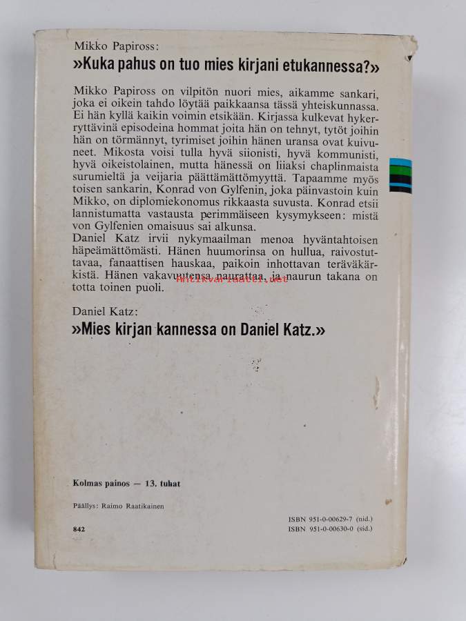 Hyvä. Hieman kulumaa reunoilla ja kulmissa, selkämyksessä hieman vinoutta. Kansipaperin kunto: jonkin verran kulumaa/pienoisia repeämiä