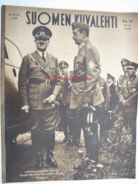 Suomen Kuvalehti 1942 nr 24 -kansikuvassa Mannerheim ja Hitler