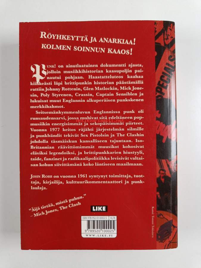 Muu(t) tekijä(t): Ilkka Salmenpohja, John RobbAlkuteos: Punk rock : an oral historyAsiasanat: muistelmat, muusikot, rock, punk, the clash, london ss