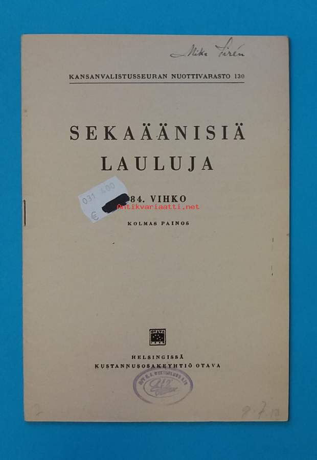 Sekaäänisiä lauluja 84. vihko - Kansanvalistusseuran nuottivarasto 130. (Nuotteja sanoituksineen, 40-luku)