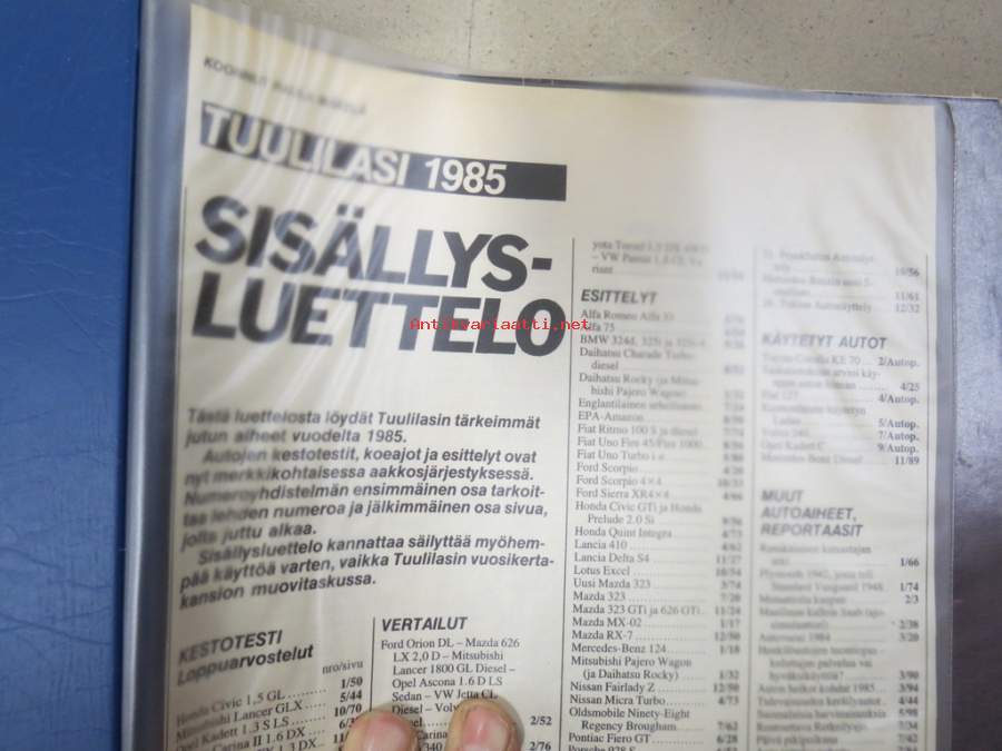 Tuulilasi 1985 nr 1-12 vuosikerta kansiossa (kustantajan myymä alkuperäinen kansio) / annual volume