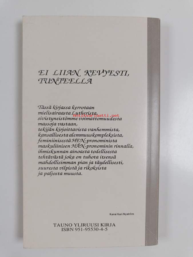Ei liian kevyesti, tunteella : pieniä kirjoitelmia (signeerattu)