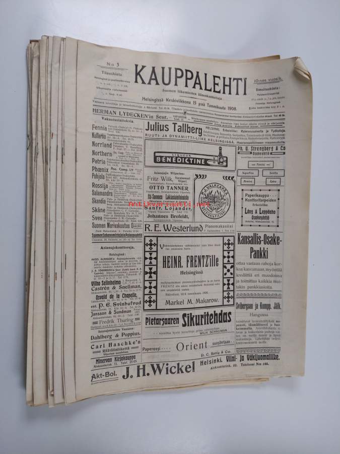 yhden kauppalehden kansissa hieman tahraisuutta ; parin Pörssi-lisälehden reunalla hieman repeämää ; kaikkien lehtien yläosan läpi menee pienoinen reikä