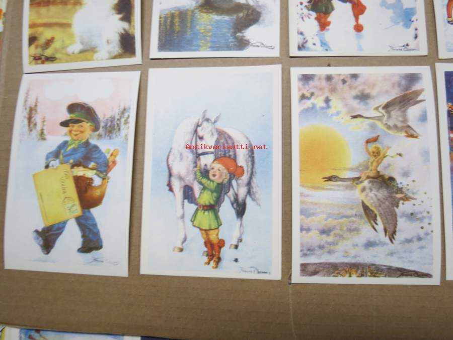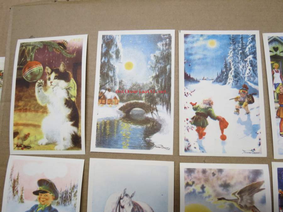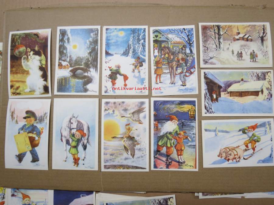 Joulukortti, joulukortit / joulukorttisarja / postikortit / postikorttisarja, käyttämättömät 11 kpl 1940-50 lukujen vaihde, taiteilijat Anders Olsson & Jenny Nyström
