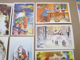 Joulukortti, joulukortit / joulukorttisarja / postikortit / postikorttisarja, käyttämättömät 11 kpl 1940-50 lukujen vaihde, taiteilijat Anders Olsson & Jenny Nyström