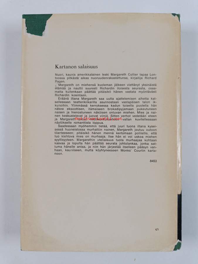Hyvä. Tarkempi kuntoluokka: K3- ; Pientä kulumaa, selkämyksessä hieman vinoutta. Kansipaperin kunto: joitain repeämiä/kulumaa
