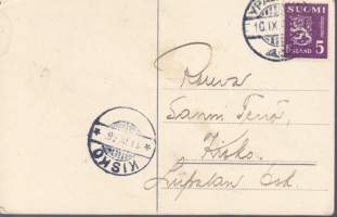 Postikortti - Onnittelukortti (kielot), 1946. Kulkenut, postimerkki mukana. Leimat Ypäjä/Kisko.