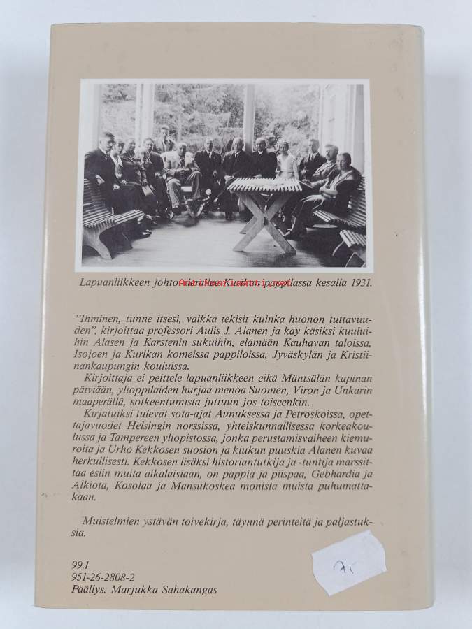 Hyvä. Tarkempi kuntoluokka: K3+ ; Hieman kolhua selkämyksen päissä, pienoista kulumaa kulmissa, takana vanha hintalappu. Kansipaperin kunto: pientä kulumaa