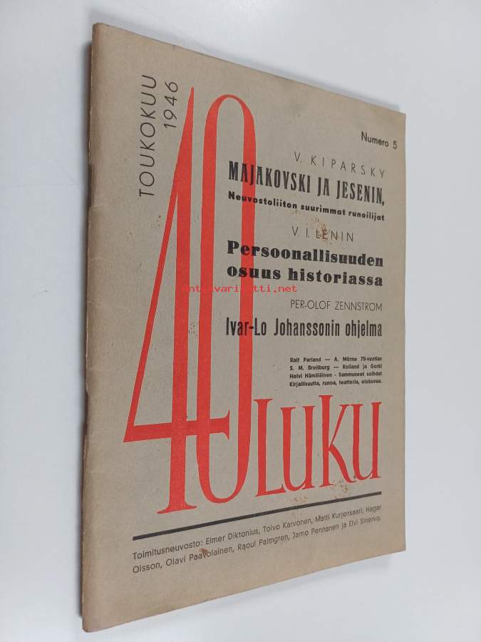 40-luku - Sosialistisen sivistyksen ja kulttuurisuomalaisuuden aikakauskirja. Lokakuu 1945