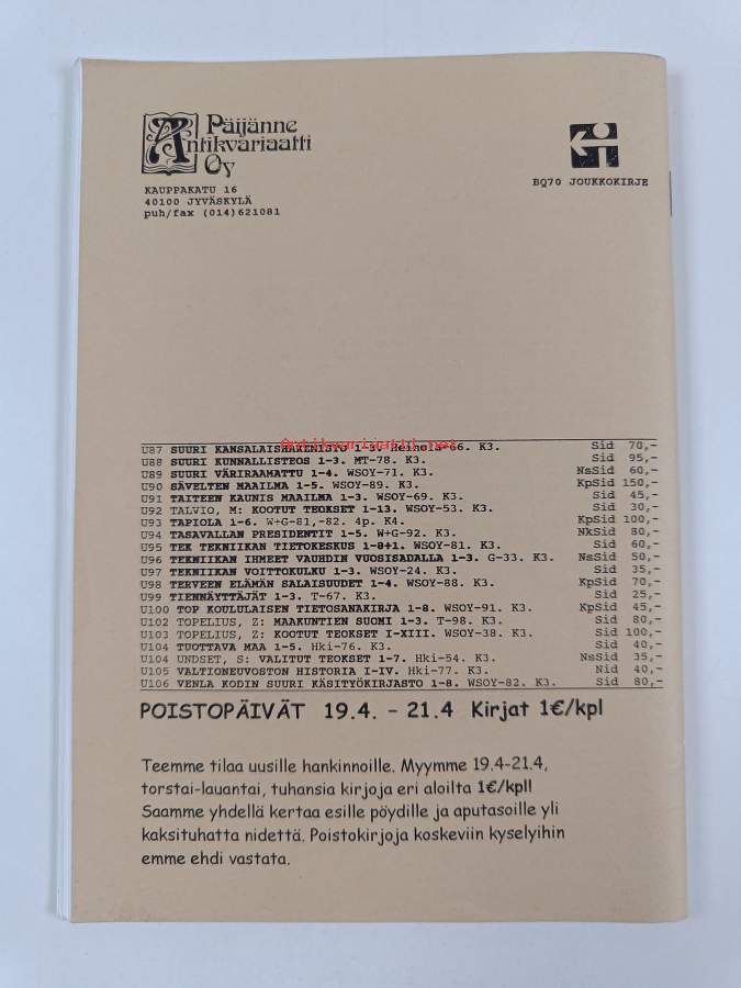Tyrvään Kirjakauppa - Kirjakellari -myyntiluettelo nr 1975 -kirjojen postimyyntiluettelo