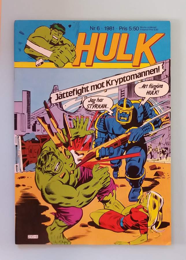 Hulk nr 6 1981 - Jättefight mot Kryptomannen (Sarjakuvat, ulkomaalaiset sarjakuvalehdet, sopiva keräilykappaleeksi, Hulk)