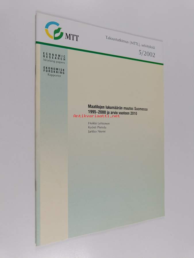 Muu(t) tekijä(t): Jarkko Niemi, Kyösti PietolaSarja: Selvityksiä / Taloustutkimus (MTTL) 5/2002Asiasanat: maatilat