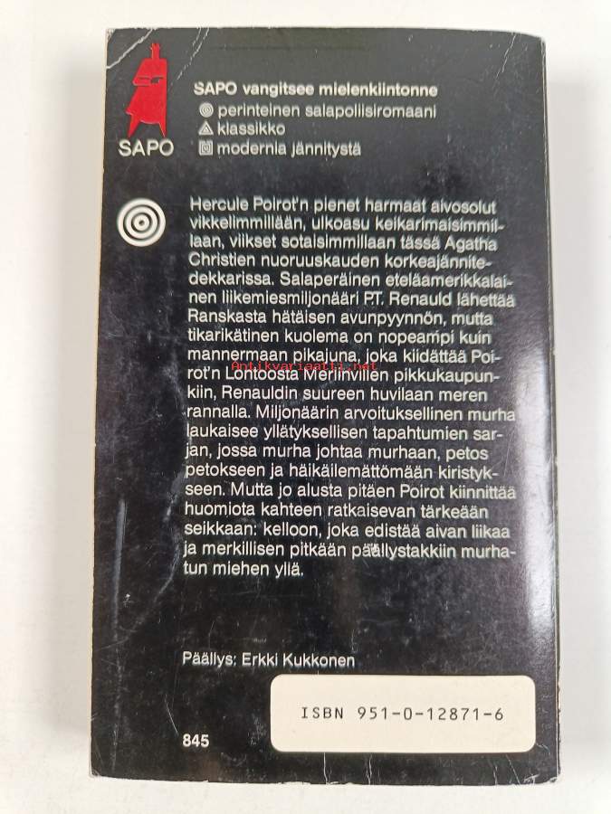 Muu(t) tekijä(t): Kirsti Kattelus, Niilo (suom.) PakarinenMerkinnät: omistajamerkintäSarja: Sapo 292Alkuteos: Murder on the linksAsiasanat: hercule poirot